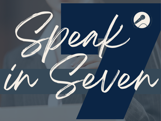 Got something to say but not sure where to start? Speak in Seven is your guided seven-day sprint to craft, refine, and deliver a confident, powerful speech you’re proud of.